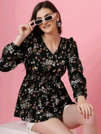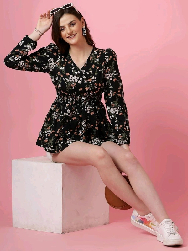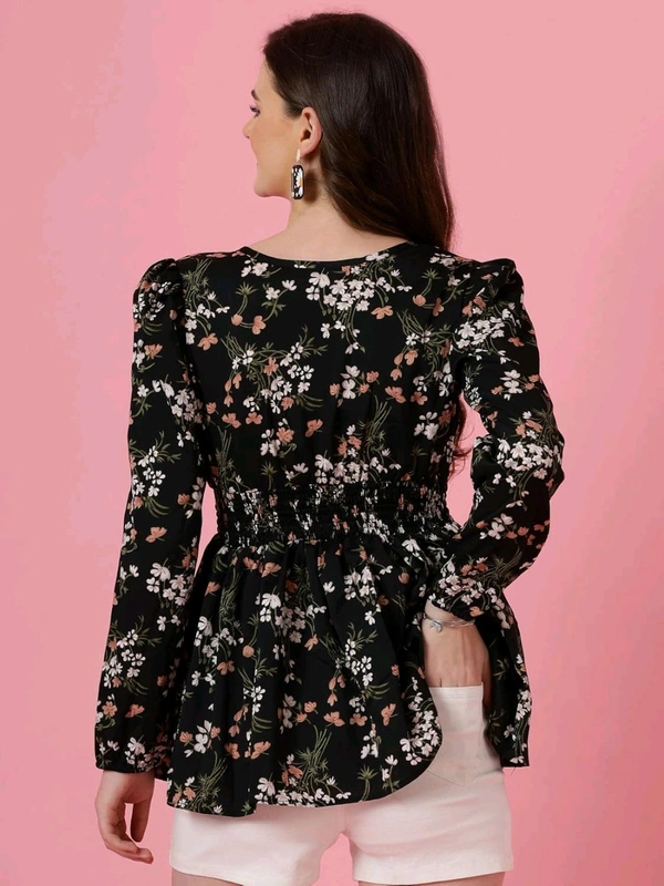 Sheetal Associates Women's Casual Puff Sleeves Floral Print Peplum Top
