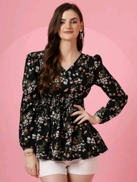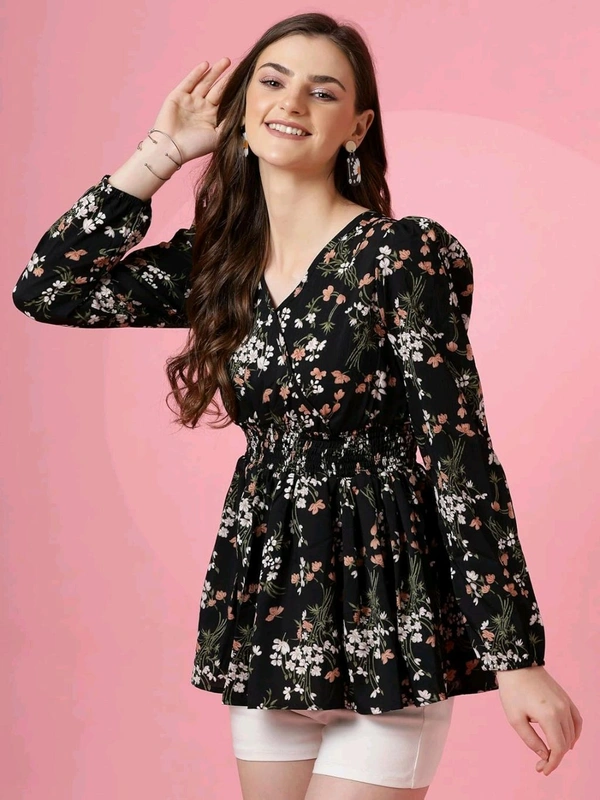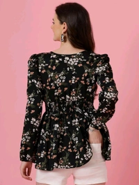 Sheetal Associates Women's Casual Puff Sleeves Floral Print Peplum Top