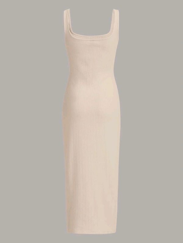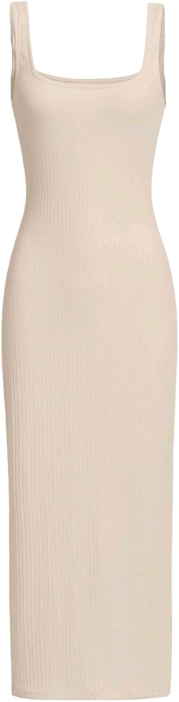 Women's Casual Sleeveless Square Neck High Waist Rib Knit Tank Long Dress