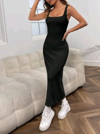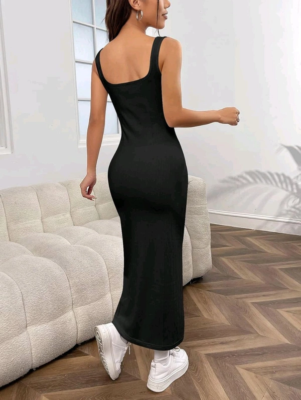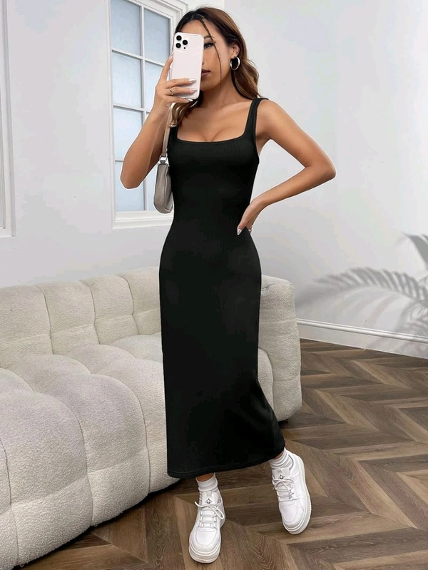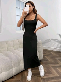 Women's Casual Sleeveless Square Neck High Waist Rib Knit Tank Long Dress