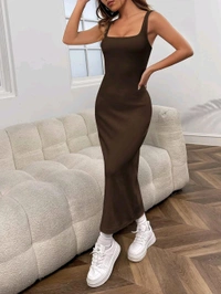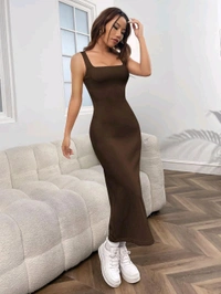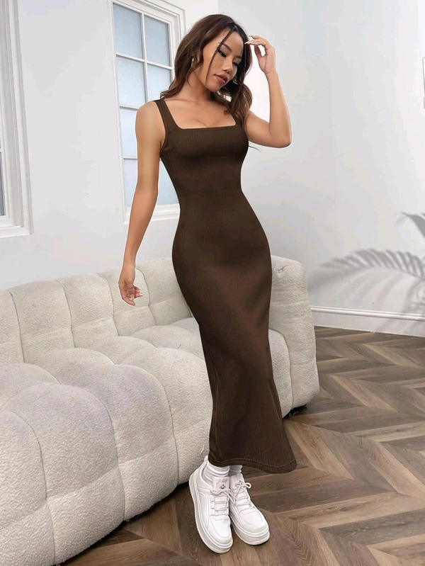Women's Casual Sleeveless Square Neck High Waist Rib Knit Tank Long Dress