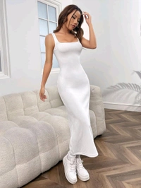 Women's Casual Sleeveless Square Neck High Waist Rib Knit Tank Long Dress