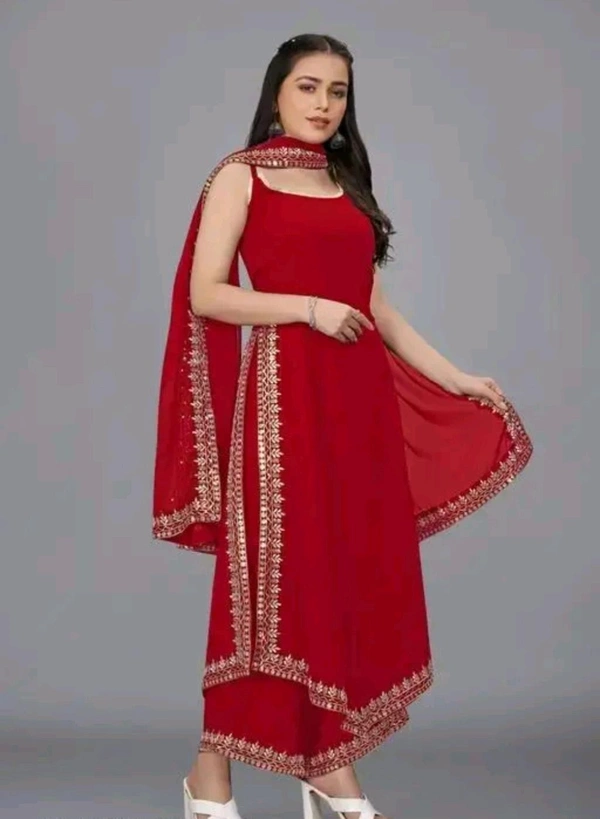 Women's Georgette Sleeveless Kurti Set With Embroidered Lace
