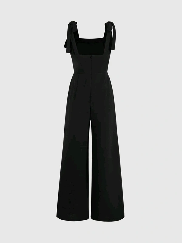 Womens Jumpsuit Tie Shoulder Wide Leg Cami Jumpsuit Zipper High Waist Casual Romper