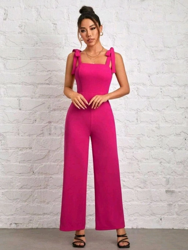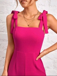 Womens Jumpsuit Tie Shoulder Wide Leg Cami Jumpsuit Zipper High Waist Casual Romper