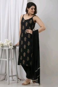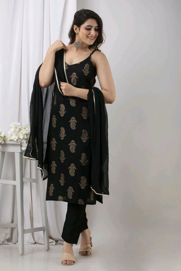 Women's Rayon Beautiful Foil Print Sleeveless Kurta | Comfortable Trendy Kurta Bottom Duppata Set | Eye-Catchy Regular Fit Kurta Set