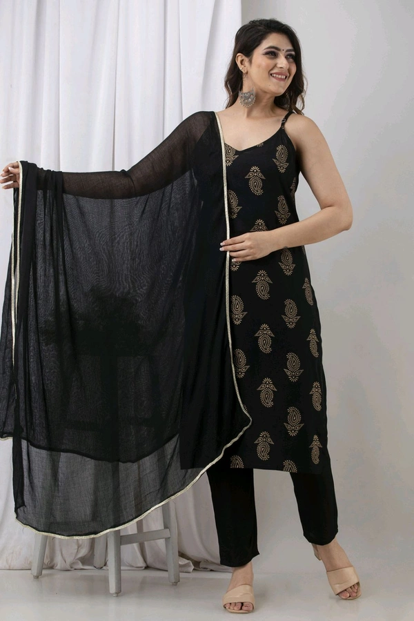 Women's Rayon Beautiful Foil Print Sleeveless Kurta | Comfortable Trendy Kurta Bottom Duppata Set | Eye-Catchy Regular Fit Kurta Set