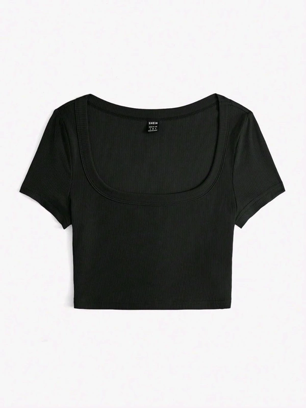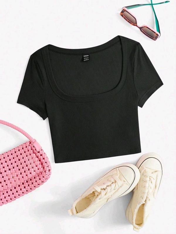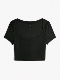 Women's Tops Sexy Tops for Women Shirts Women's Scoop Neck Crop Tee Women's Dress(Hot Pink,X-Small)