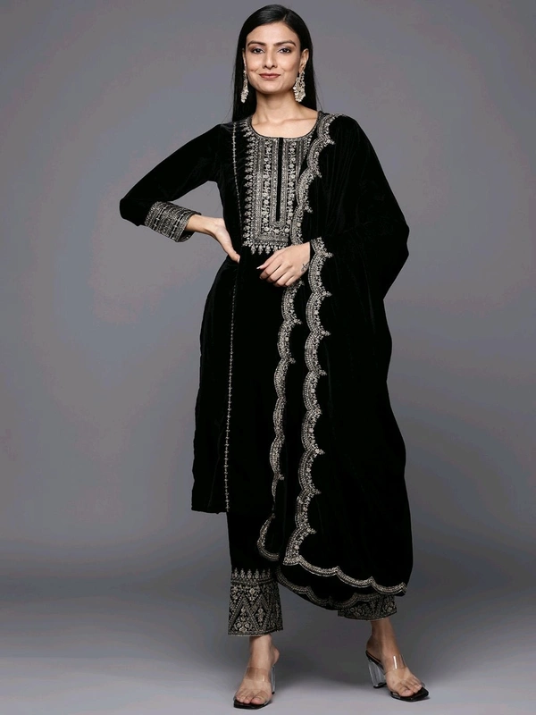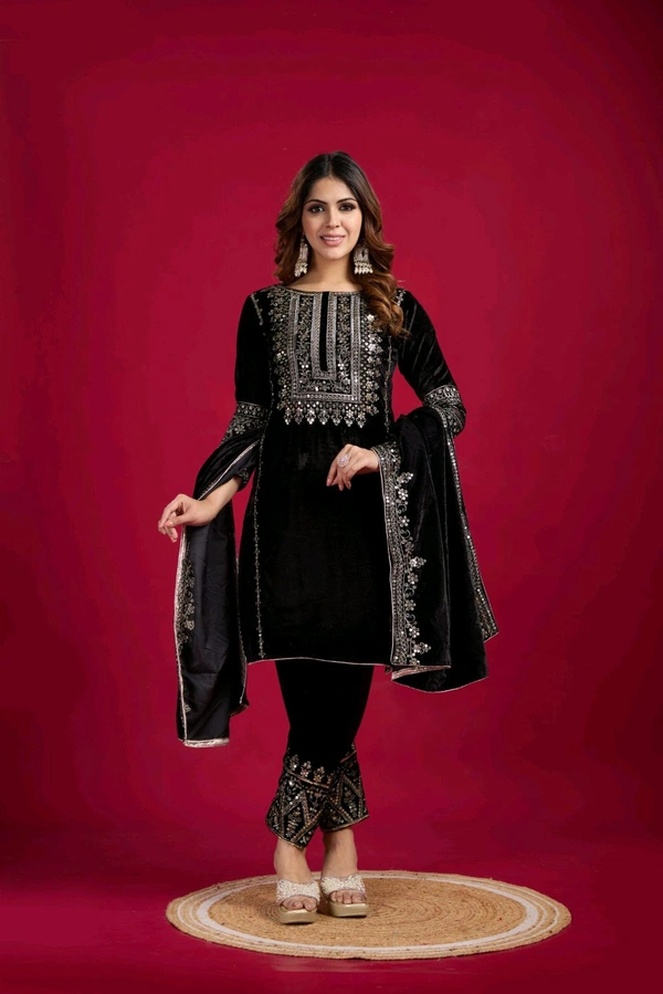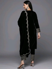 Women's Velvet Embroidered Maroon Straight Kurta Suit Set with Pant and Dupatta||Velvet Suit For Women||Velvet Kurta Set Women||Kurta Set For Women Winter