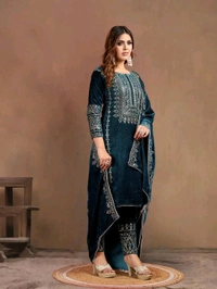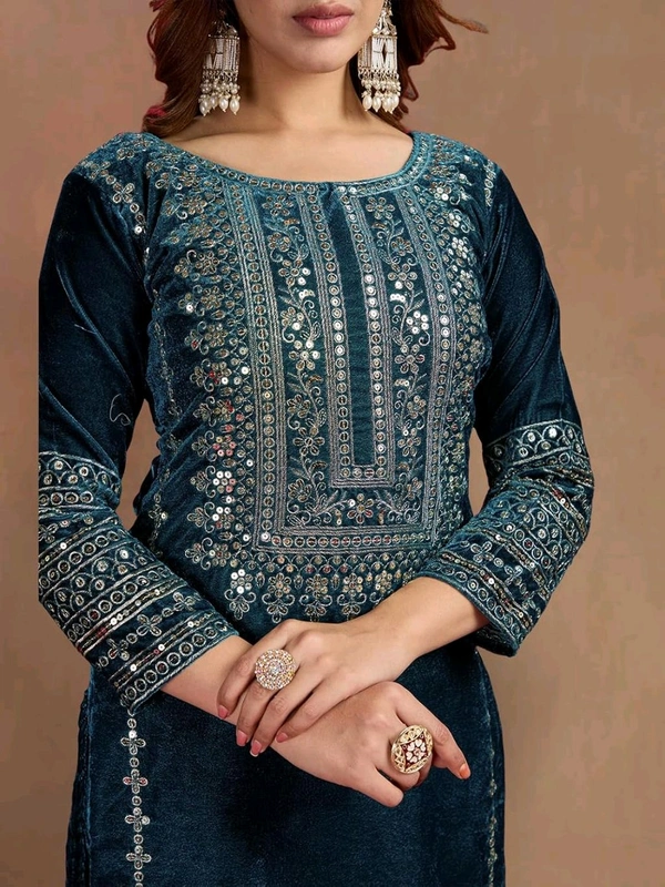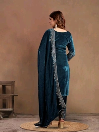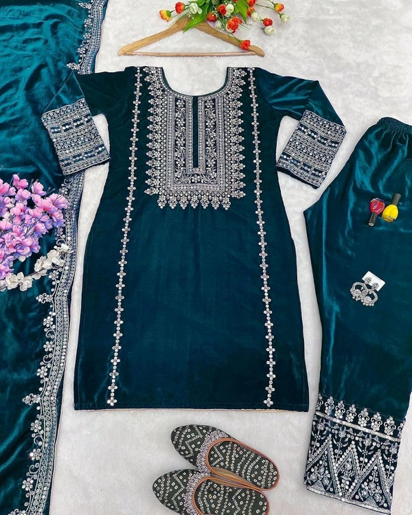 Women's Velvet Embroidered Maroon Straight Kurta Suit Set with Pant and Dupatta||Velvet Suit For Women||Velvet Kurta Set Women||Kurta Set For Women Winter