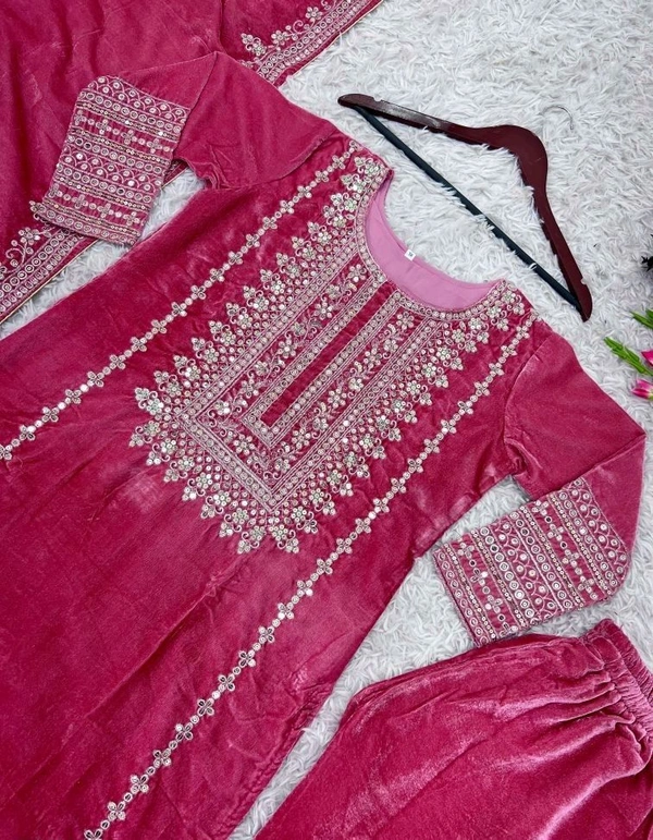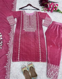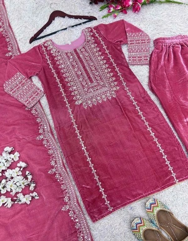 Women's Velvet Embroidered Maroon Straight Kurta Suit Set with Pant and Dupatta||Velvet Suit For Women||Velvet Kurta Set Women||Kurta Set For Women Winter