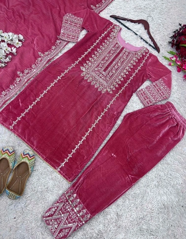 Fabric: Velvet::Kurta Color Purple